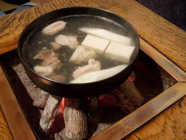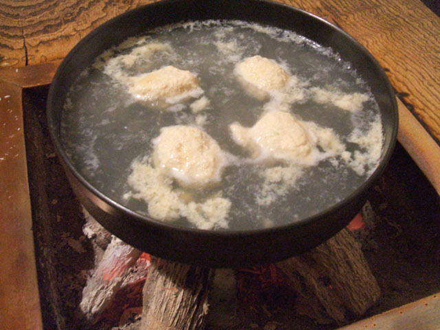 お肉とネギとお豆腐を食べ終ると、お塩が入った蕎麦猪口が運ばれてきます。