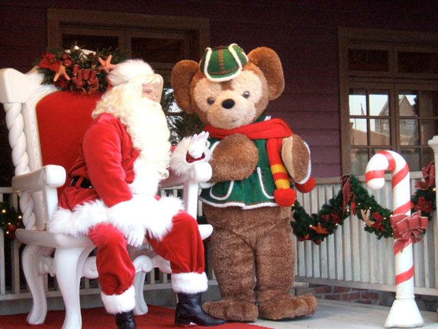 サンタさんとかわいすぎるテディーベアのダッフィー。