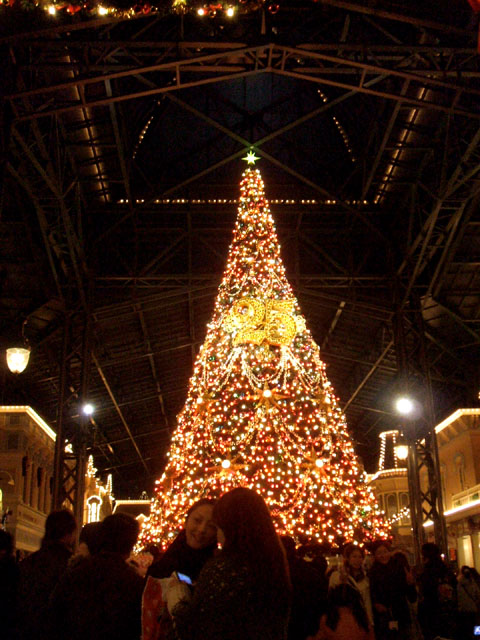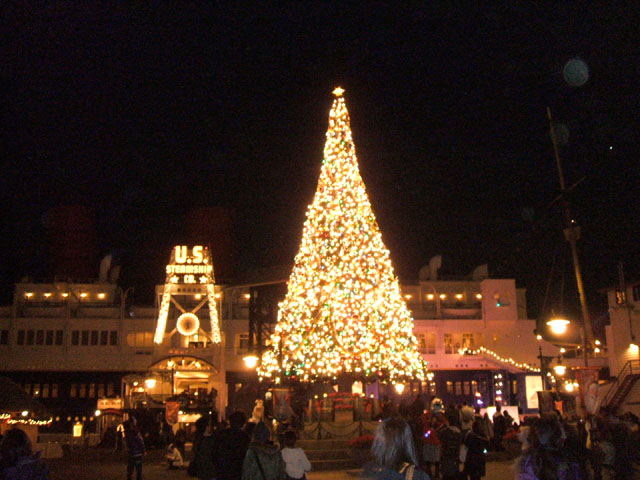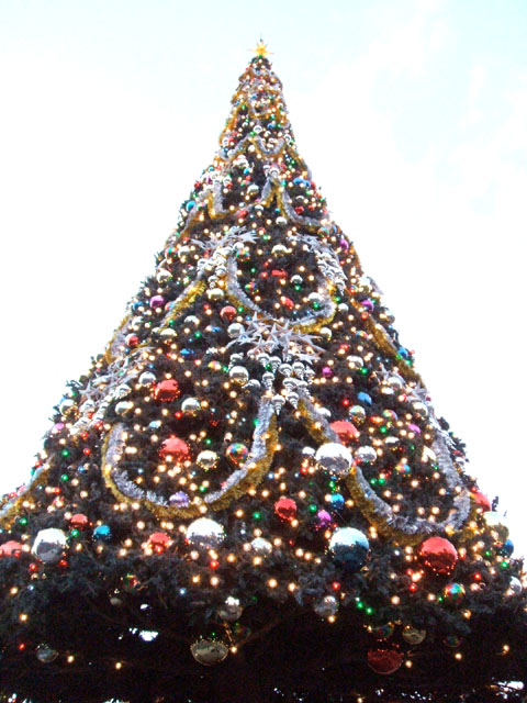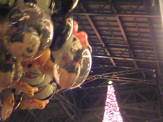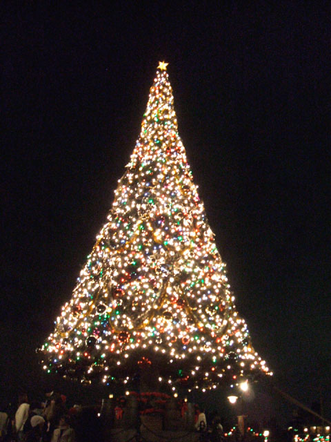 2度目のショーは、ちょっと離れたツリーの下で見る。