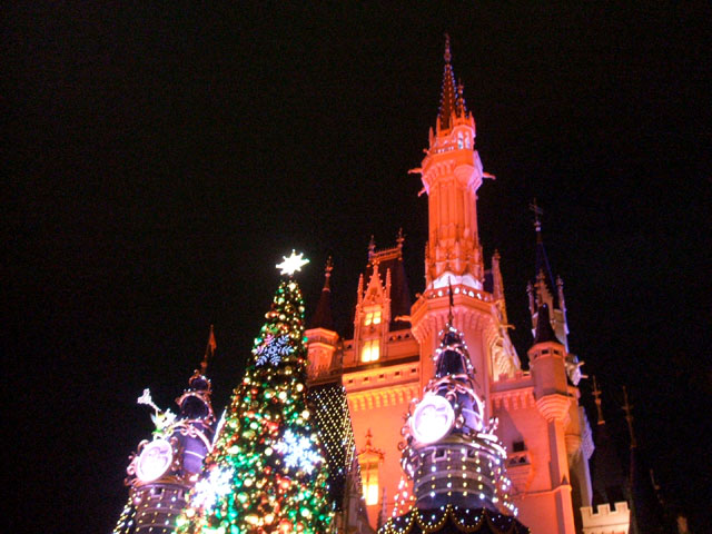 ジングルベルの音楽に合わせて、花火が上がってました。きれいだったー!