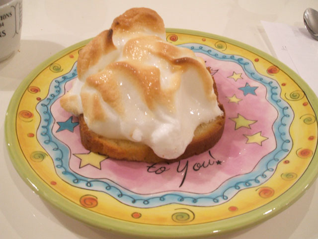 ベイクドアラスカはパウンドケーキの上にバニラアイスを載せメレンゲを載せて